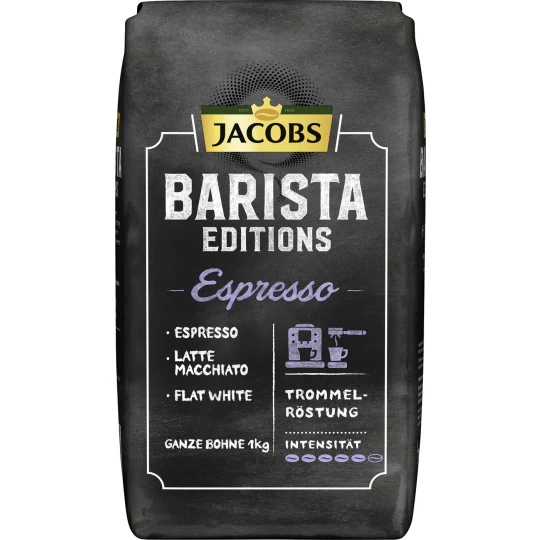 Du liebst Espresso, Cappuccino oder Latte Macchiato? Dann lernen unsere Jacobs Barista Editions Espresso kennen – eine kraftvolle Mischung südamerikanischer und asiatischer Kaffees. Die Bohnen werden im Trommelröster geröstet und haben einen intensiven und vollmundigen Geschmack mit leichter würziger Note – ideal für die Zubereitung mit Kaffeevollautomat, Siebträger oder French Press.